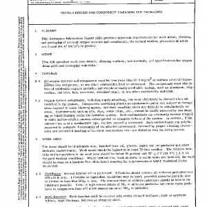 This AIR specifies work area details, cleaning methods, test methods, and specifications for oxygen clean parts and packaging materials.