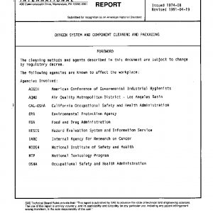 This Aerospace Information Report (AIR) specifies work area details, cleaning methods, test methods, and specifications for oxygen clean parts and packaging materials.