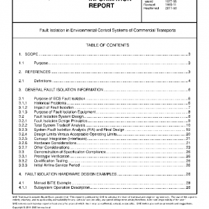 This SAE Aerospace Information Report (AIR) outlines concepts for the design and use of fault isolation equipment that have general application. The specific focus is on fault isolation of environmental control systems (ECS) in commercial transports. Presented are general fault isolation purposes, design principles, and demonstration of compliance criteria. These are followed by three design examples to aid in understanding the design principles. Future trends in built-in-test-equipment (BITE) design are discussed, some of which represent concepts already being implemented on new equipment.