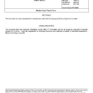 This SAE Aerospace Information Report (AIR) provides recommendations for the best practices to be followed in the molding of rigid thermoplastic and thermosetting molding compounds. The molding processes covered in this document are injection, transfer and compression molding. Recommendations are made on the design details of the part such as draft angles and processing considerations such as gate location in order to yield an easily producible, high quality, functional part.