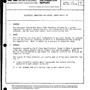 This AIR defines the areas where incompatibility may exist between the selected wire and the electrical connector in which it is terminated and how to design for compatibility. Refer to ARP914 for a glossary of connection terms.