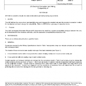This AIR defines the areas where incompatibility may exist between the selected wire and the electrical connector in which it is terminated and how to design for compatibility. Refer to ARP914 for a glossary of connection terms.
