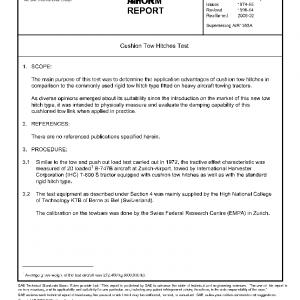 The main purpose of this test was to determine the application advantages of cushion tow hitches in comparison to the commonly used rigid tow hitch type fitted on heavy aircraft towing tractors.