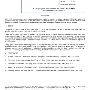 The purpose of this report is to provide guidance on low temperature properties of rubber with the terminology, test methods, and mathematical models applicable to rubber, and to present some practical experience. In this way, it is hoped that mistakes can be avoided, particularly in selection of rubber materials, enabling the design engineer to weigh low-temperature material properties together with the many other factors involved in the design process.