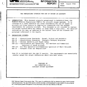FAA REGULATIONS COVERING THE USE OF OXYGEN IN AIRCRAFT