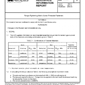 This AIR supplies information on recommended assembly torque limits for tension type nuts and bolts of the materials and plating combinations given in Table 1.