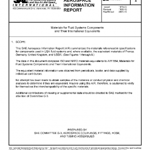 This SAE Aerospace Information Report (AIR) summarizes the materials referenced in specifications for components used in USA fluid systems and, where available, the equivalent materials of France, Germany, United Kingdom, and USSR. (See Figures 1 through 8.)