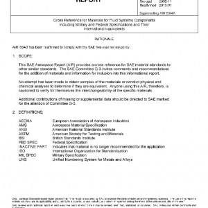 This SAE Aerospace Report (AIR) provides a cross reference for SAE material standards to other similar standards. The SAE Committee G-3 invites comments and recommendations for the addition of materials and information for inclusion into this informational report.