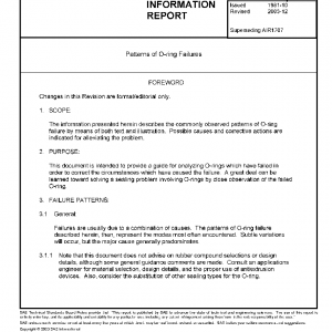 The information presented herein describes the commonly observed patterns of O-ring failure by means of both text and illustration. Possible causes and corrective actions are indicated for alleviating the problem.