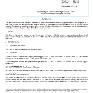 This document presents a glossary of many terms found in literature related to aviation oxygen systems and associated topics. Such a listing can never be all inclusive, but the majority of important terms are anticipated to be included for reference.