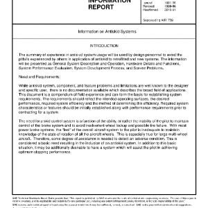 This SAE Aerospace Information Report (AIR) has been prepared by a panel of the SAE A-5A Committee and is presented to document the design approaches and service experience from various applications of antiskid systems. This experience includes commercial and military applications.