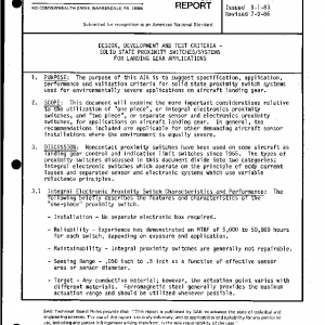 DESIGN, DEVELOPMENT AND TEST CRITERIA – SOLID STATE PROXIMITY SWITCHES/SYSTEMS FOR LANDING GEAR APPLICATIONS