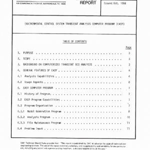 The Environmental Control Analysis SYstem (EASY) computer program is summarized in this report. Development of this computer program initially was sponsored by the U.S. Air Force Flight Dynamics Laboratory. (See References 1, 2, 3, and 4.) It provides techniques for determination of steady state and dynamic (transient) ECS performance, and of control system stability; and for synthesis of optimal ECS control systems. The program is available from the U.S. Air Force, or as a proprietary commercial version.