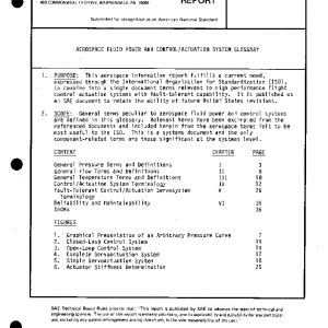 General terms peculiar to aerospace fluid power and control systems are defined in this glossary. Relevant terms have been excerpted from the referenced documents and included herein from the aerospace terms felt to be most useful to the ISO. This is a systems document and the only component-related terms are those significant at the systems level.