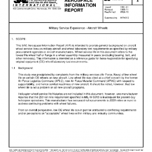This SAE Aerospace Information Report (AIR) is intended to provide general background on aircraft wheel service lives on military aircraft and wheel laboratory test requirements as specified by military procurement agencies or aircraft manufacturers. Wheel service life in this document refers to the lowest life wheel half or flange in a wheel assembly measured in years (excluding bearing, bolt, and other removals). This information is intended as a reference guide for those responsible for specifying original equipment (OE) wheel laboratory test requirements.