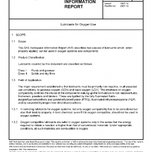 This SAE Aerospace Information Report (AIR) describes two classes of lubricants which, when properly applied, can be used in oxygen systems and components.
