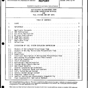This document describes the initial development, evolution, and use of reticulated polyurethane foam as an explosion suppression material in fuel tanks and dry bays. It provides historical data, design practice guidelines, references, laboratory test data, and service data gained from past experience.