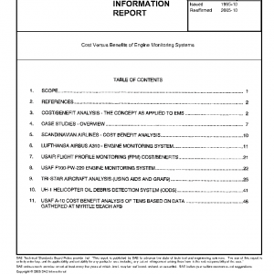 The purpose of this SAE Aerospace Information Report (AIR) is to provide information that would be useful to potential users/operators and decision makers for evaluating and quantifying the benefits of an Engine Monitoring Systems (EMS) versus its cost of implementation.
