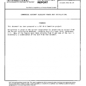 Turbine-type APU’s are by far the most highly developed and universally used airborne units, so their installation will dominate the discussion in this document. And, though there have been some APU’s developed for military applications, many military transports are adaptations of commercial carrier aircraft. The bulk of the discussion will, therefore, be oriented toward APU installation requirements as developed by the civilian sector. Discussions of the internal design aspects of the APU itself are not within the scope of this document.
