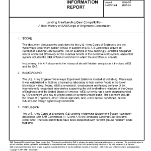 This document discusses the work done by the U.S. Army Corps of Engineers and the Waterways Experiment Station (WES) in support of SAE A-5 Committee activity on Aerospace Landing Gear Systems. It is an example of how seemingly unrelated disciplines can be combined effectively for the eventual benefit of the overall aircraft system, where that system includes the total airfield environment in which the aircraft must operate.
