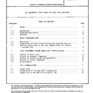 The above chalking incident coupled with concerns resulting from deficiencies observed with the current JRF, and from changing sources of JP-4 indicated that an update of the JRF formulation in the sealant specifications was needed. A proposal was made to the SAE Aerospace Sealing Committee (G-9) which then formed a subcommittee for the development of a new Jet Reference Fluid (JRF) for evaluation of integral fuel tank sealants with Mr. W. F. Anspach as its chairman. The subcommittee members were: