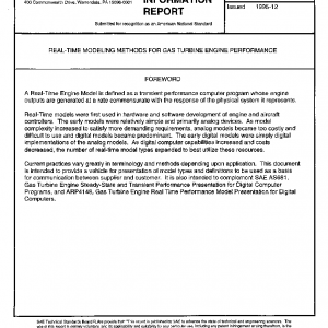 This SAE Aerospace Information Report (AIR) provides a review of real-time modeling methodologies for gas turbine engine performance. The application of real-time models and modeling methodologies are discussed. The modeling methodologies addressed in this AIR concentrate on the aerothermal portion of the gas turbine propulsion system. Characteristics of the models, the various algorithms used in them, and system integration issues are also reviewed. In addition, example cases of digital models in source code are provided for several methodologies.
