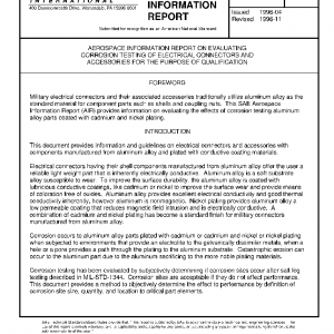 AEROSPACE INFORMATION REPORT ON EVALUATING CORROSION TESTING OF ELECTRICAL CONNECTORS AND ACCESSORIES FOR THE PURPOSE OF QUALIFICATION