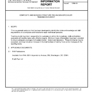 This is a general curriculum that has been developed to identify the minimum knowledge and skill requirements of a composite and metal bond repair technician/specialist.