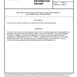 The original purpose of this document was to establish interface requirements for modular avionics backplanes to be prototyped up to 1995. The document was issued as ARD50011 in September 1992. It is being reissued as an SAE Aerospace Information Report (AIR) in order to: