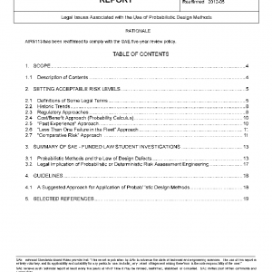 This SAE Aerospace Information Report (AIR) addresses legal issues concerning use of non-deterministic methods in the design and/or analysis of systems. The investigation includes an assessment of legal precedent for use of these methods both in the aerospace industry and in other non-aerospace engineering contexts. The investigation is primarily, but not exclusively, focused on United States of America Federal and State Law.