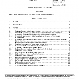 This SAE Aerospace Information Report (AIR) provides an overview of the issues relating to the support and supportability of software in computer-based systems. It has general applicability to all sectors of industry and commerce and to all types of equipment that contain software. The software support issues and activities summarized in this report are reasonably easy to comprehend. The reader should not be mislead into believing development of supportable software is easy to achieve. The target audience for the document includes software acquisition organizations, developers, supporters, and end-use customers.