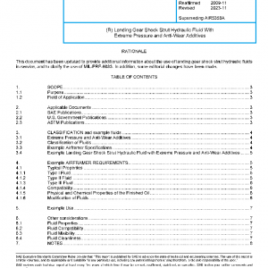 This document describes hydraulic fluids used in landing gear shock struts with extreme high contact pressure and anti-wear additives that have been added for improved lubrication.