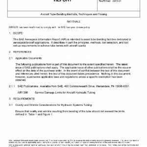 This SAE Aerospace Information Report (AIR) is intended to assist tube bending facilities dedicated to aerospace/aircraft applications. It describes in part the principles, methods, tool selection, and tool set-up requirements to achieve tube bends with aircraft quality.