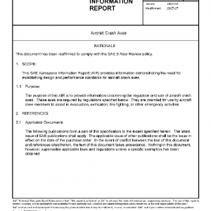 This SAE Aerospace Information Report (AIR) provides information demonstrating the need for establishing design and performance standards for aircraft crash axes.