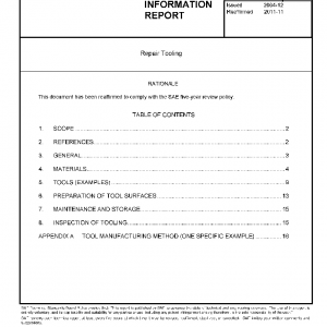 This SAE Aerospace Information Report (AIR) offers information about the use of support tooling for composite repair processes, as well as descriptions of some of the different tooling materials used and their applications. If the repair document requires the use of tooling, refer to this AIR for additional information.