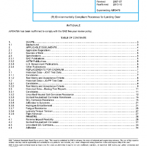 This SAE Aerospace Information Report (AIR) describes the performance of platings and coatings for landing gear that potentially provide environmental compliance benefits versus the current baseline processes. The hazardous systems addressed in this version of the document include cadmium plating, chromated primers, and high VOC (volatile organic compounds) topcoats.