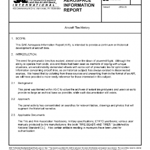This SAE Aerospace Information Report (AIR), is intended to provide a continuum on historical development of aircraft tires.
