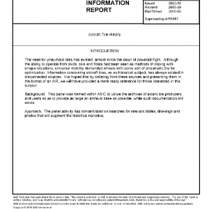 This SAE Aerospace Information Report (AIR), is intended to provide a continuum on historical development of aircraft tires.