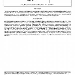 The scope of the test method is to provide stakeholders including fluid manufacturers, brake manufacturers, aircraft constructors, aircraft operators and airworthiness authorities with a relative assessment of the effect of deicing chemicals on carbon oxidation. This simple test is only designed to assess the relative effects of runway deicing chemicals by measuring mass change of contaminated and bare carbon samples tested under the same conditions. It is not possible to set a general acceptance threshold oxidation limit based on this test method because carbon brake stack oxidation is a function of heat sink design and the operating envirnoment.