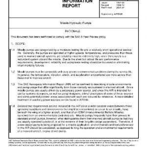 Missile pumps are categorized by a moderate testing life and a relatively short operational service life. Generally, the pumps are operated at higher speeds, temperatures, and pressures than those used in manned aircraft systems, yet reliability must be extremely high, since there rarely is a redundant system aboard the missile. Due to the short but critical life and performance requirements, development, reliability and acceptance testing should be focussed on eliminating infant mortality failures.