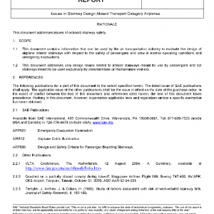 This document contains information that can be used by the air transportation industry to evaluate the design of airplane interior stairways with respect to the safety of passengers and crew in normal operating conditions and emergency evacuations.