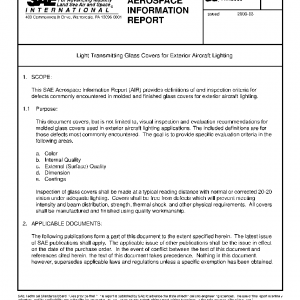 This SAE Aerospace Information Report (AIR) provides definitions of and inspection criteria for defects commonly encountered in molded and finished glass covers for exterior aircraft lighting.