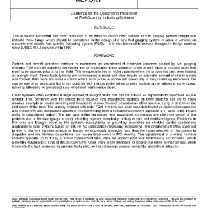 This document is applicable to commercial and military aircraft fuel quantity indication systems. It is intended to give guidance for system design and installation. It describes key areas to be considered in the design of a modern fuel system, and builds upon experiences gained in the industry in the last 10 years.