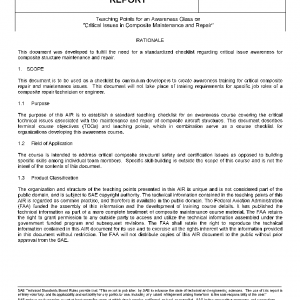 This document is to be used as a checklist by curriculum developers to create awareness training for critical composite repair and maintenance issues. This document will not take place of training requirements for specific job roles of a composite repair technician or engineer.