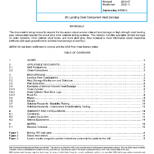 The purpose of this report is to outline types of in-service heat damage that have been observed in high strength steel landing gear components, with an emphasis on a particular type that is referred to as “Ladder Cracking” which can develop in landing gear shock struts. The report discusses how ladder cracking can be detected visually and evaluated by non-destructive inspection methods, and how it can be repaired at overhaul with the prior approval of the Original Equipment Manufacturer. This report also describes the use of a bearing material that has resolved this problem without introducing other problems. Examples of other types of service induced heat damage are also discussed.