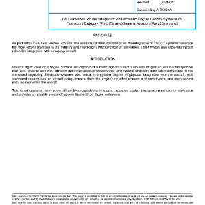 This SAE Aerospace Information Report (AIR) provides methodologies and approaches that have been used to install and integrate full-authority-digital-engine-control (FADEC) systems on transport category aircraft. Although most of the information provided is based on turbofan/turboprop engines installed on large commercial transports, many of the issues raised are equally applicable to corporate, general aviation, regional, and commuter aircraft, and to military installations, particularly when commercial aircraft are employed by military users. The word “engine” is used to designate the aircraft propulsion system. The engine station designations used in this report are shown in Figures 1 to 3.
