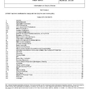 This SAE Aerospace Information Report (AIR) describes the design, operation, and attributes of electrical braking systems for both military and commercial aircraft. At this time, the document focuses only on brakes utilizing electromechanical actuators (EMAs), as that is the present state of the art. As such, the discussions herein assume that EMAs can simply replace the hydraulic actuation portion of typical brake system leaving things such as the wheel and heat sink unchanged. Furthermore, the document provides detail information from the perspective of brake system design and operation. The document also addresses failure modes, certification issues, and past development efforts. Details on the design and control of electric motors, gear train design, ball or roller screw selection are available in the reference documents and elsewhere, but are outside the scope of this document.
