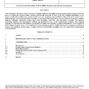 Various measurement methodologies and operability and compatibility issues are described within the TAs. The TAs briefly discuss degrees of sensitivity, accuracy, repeatability, and test operations acceptability for each measurement discipline. They reflect that many important technical advances have been accomplished for measurement techniques of nonvolatile particles. Additional research is required to transition the TAs to Aerospace Recommended Practices.