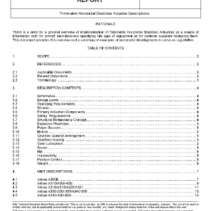 The main focus is on mechanical systems which may be actuated hydraulically or electrically. The document is intended as an overview for those specifying or designing Horizontal Stabilizer Trim Actuators in order to compare existing solutions as reference for implementation in new aircraft programs.