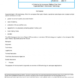 This SAE Aerospace Information Report (AIR) provides an overview of EB technology as it applies to the aerospace fiber optic industry. Applicable personnel include: